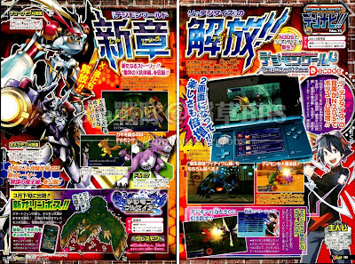 Recentemente anunciamos que a quarta parte do projeto de comemoração do aniversário de 15 anos seria revelada na edição de Abril da V-Jump. Duas scans foram divulgadas na internet informando que o jogo de Digimon World Re:Digitize teria uma versão para Nintendo 3DS.
