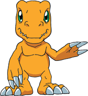 Dubradora: Fujita Toshiko Cartão/Brasão: Coragem Descrição: Não é muito bom nos estudos, apesar de ser um atleta excelente. Às vezes falha ao ser exagerado, mas não se desencoraja de modo algum, e carrega os seus companheiros com sua coragem e capacidade de agir inerentes. | Agumon [Infantil] Dobradora: Chika Sakamoto Descrição: Um Digimon bípede do tipo réptil. Possui uma personalidade muito similar à de Taichi, azafamada. |